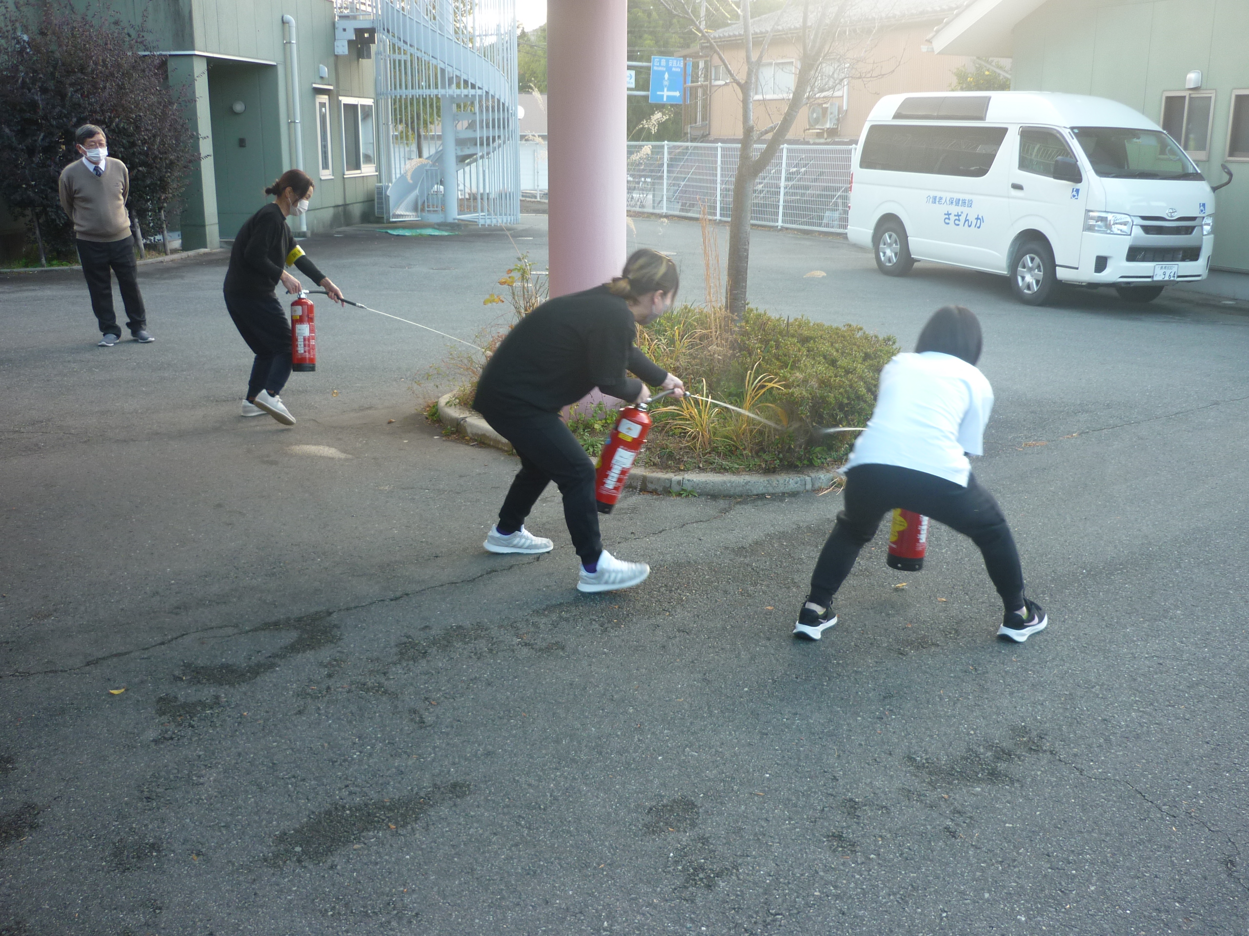 消防署の立会いの下、さざんかの消防訓練を行いました。